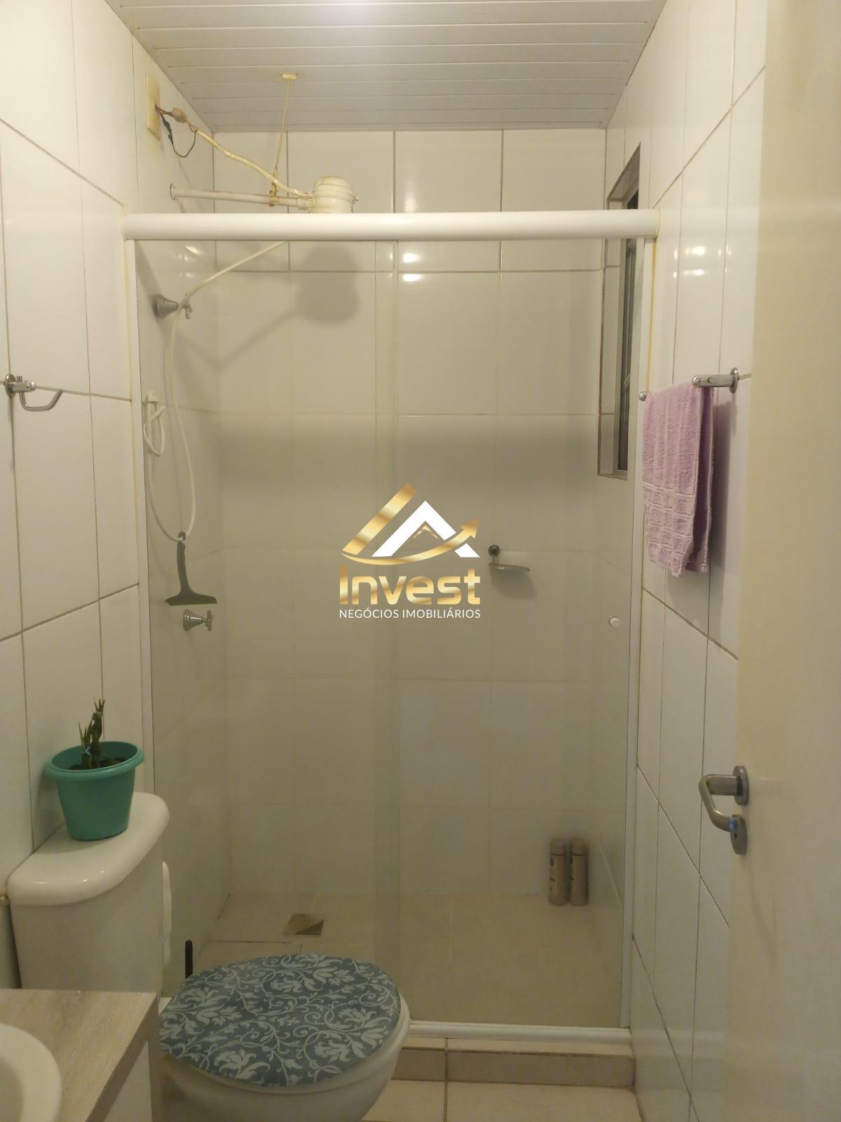 Banheiro com box e armário;