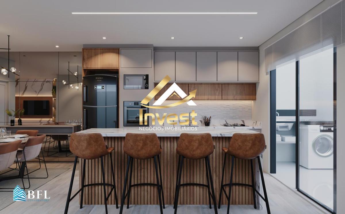 Pavimento inferior: sala de tv, sala de jantar e cozinha em conceito aberto, lavado, lavanderia e churrasqueira.
